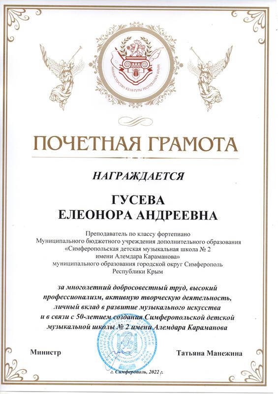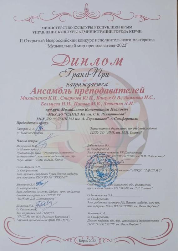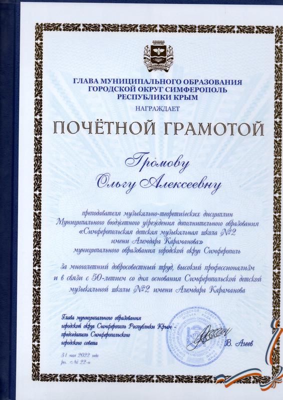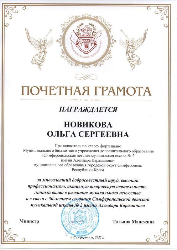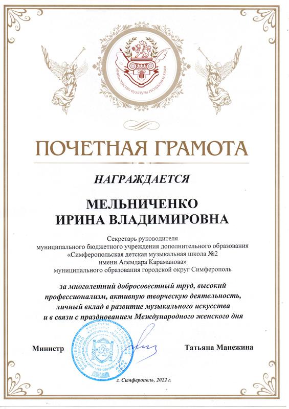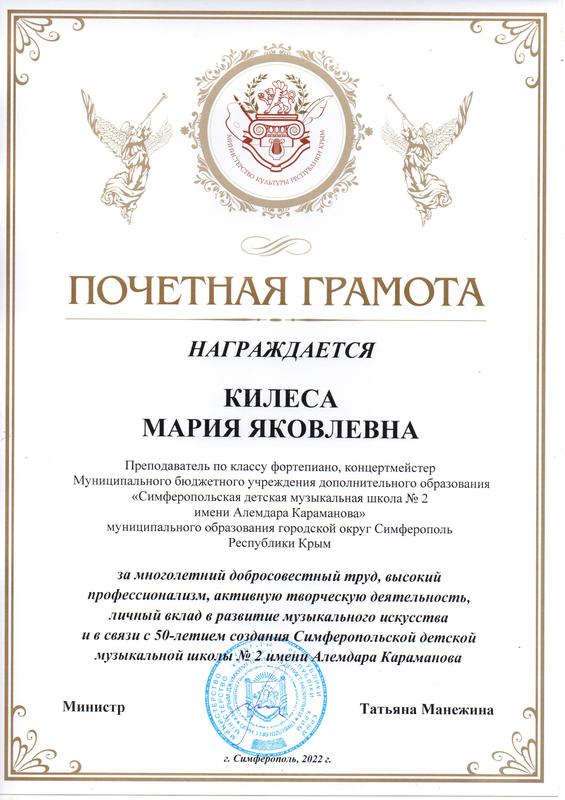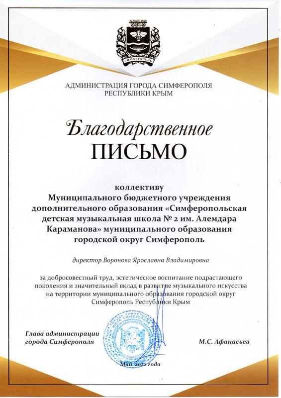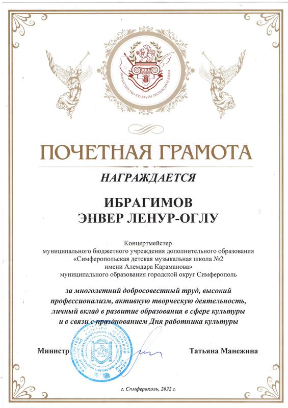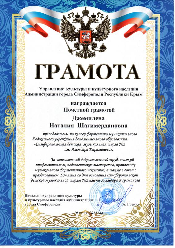 Муниципальное бюджетное учреждение дополнительного образования «Симферопольская детская музыкальная школа № 2 имени Алемдара Караманова» муниципального образования городской округ Симферополь