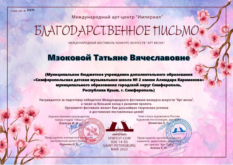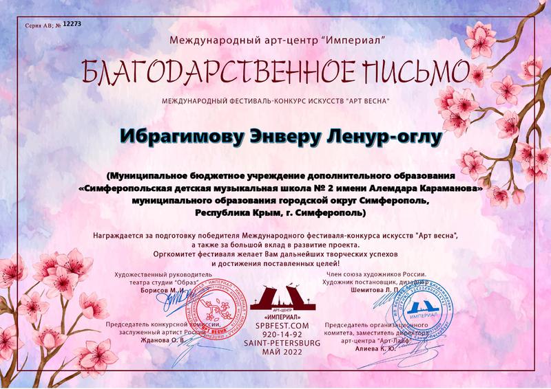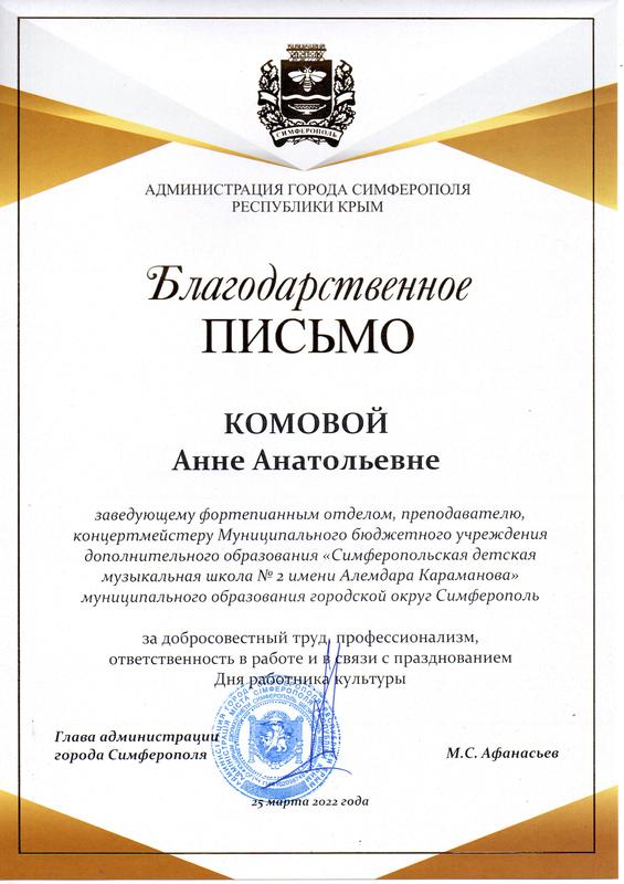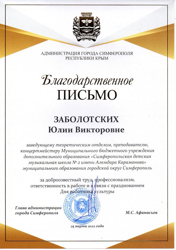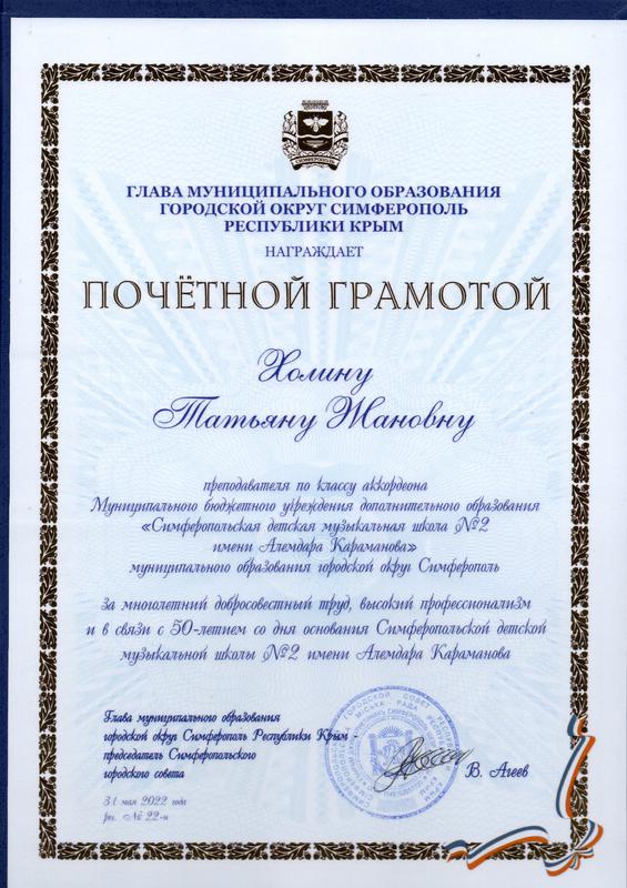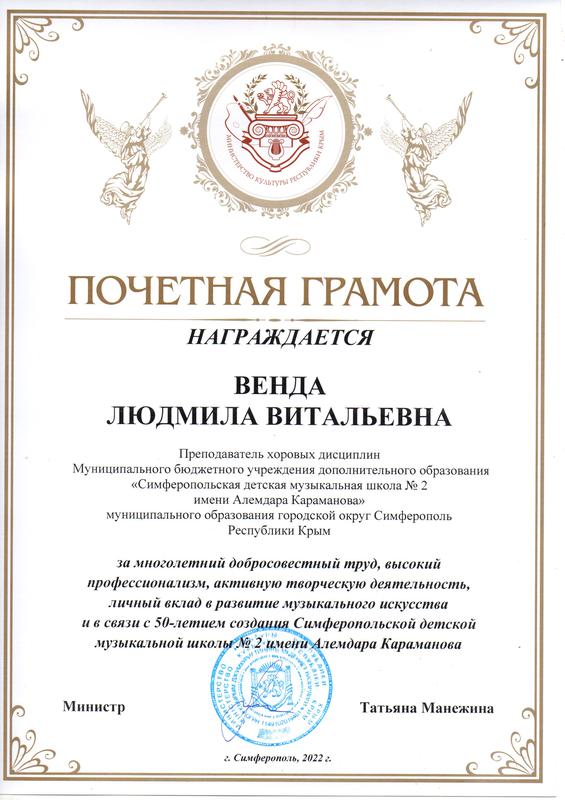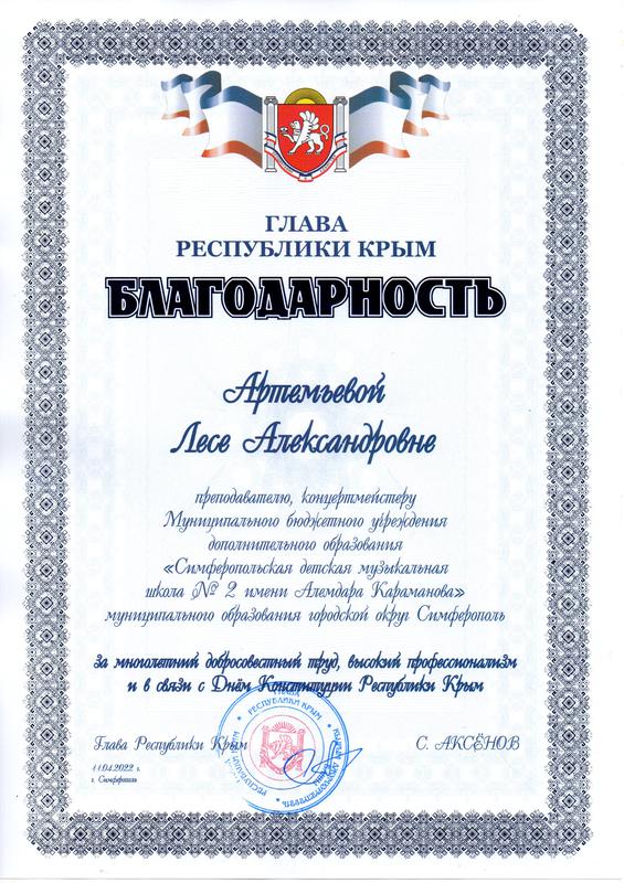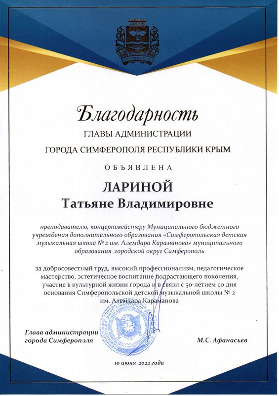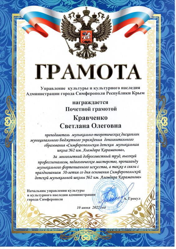 Муниципальное бюджетное учреждение дополнительного образования «Симферопольская детская музыкальная школа № 2 имени Алемдара Караманова» муниципального образования городской округ Симферополь