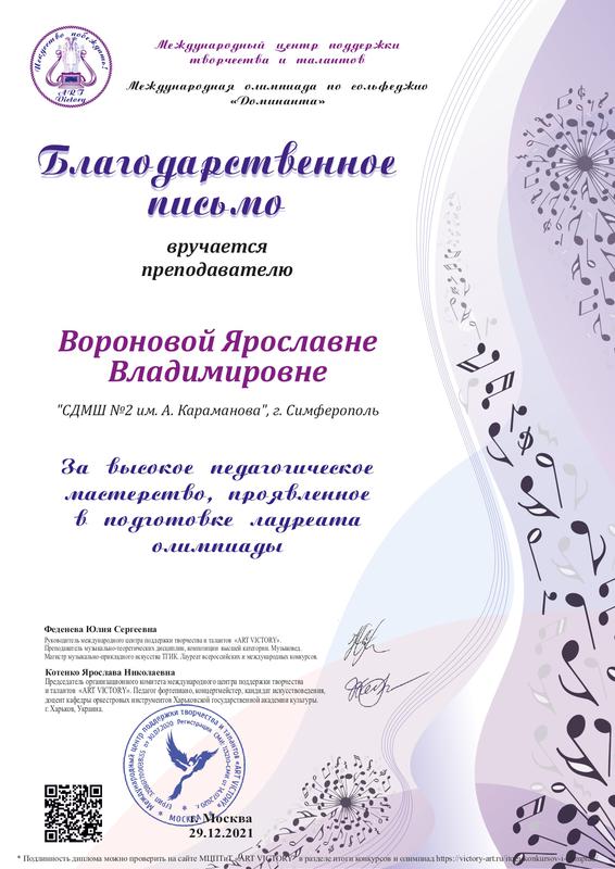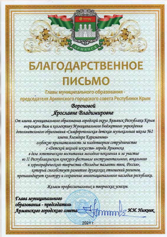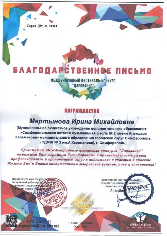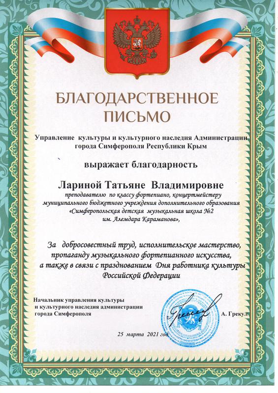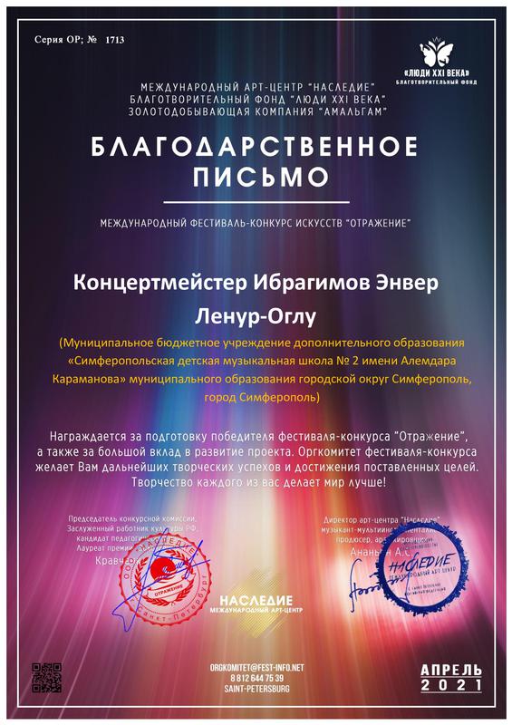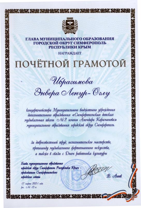 Муниципальное бюджетное учреждение дополнительного образования «Симферопольская детская музыкальная школа № 2 имени Алемдара Караманова» муниципального образования городской округ Симферополь