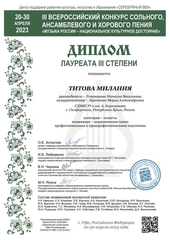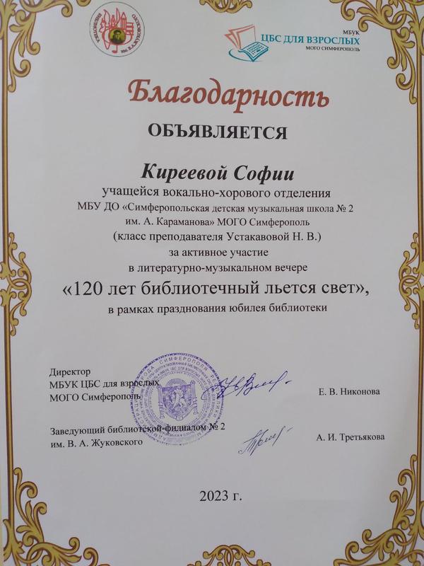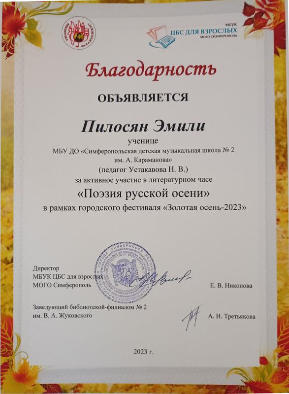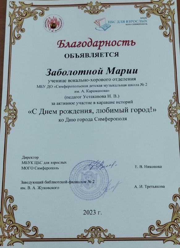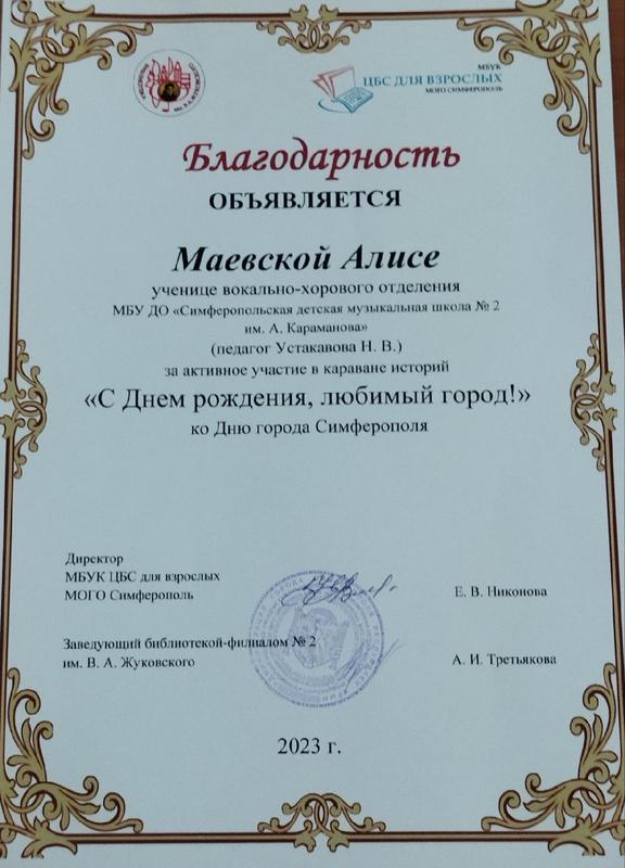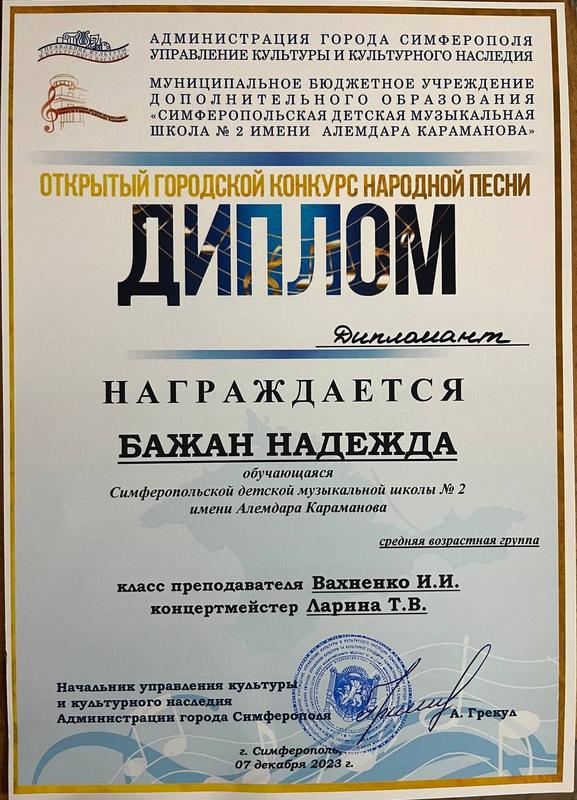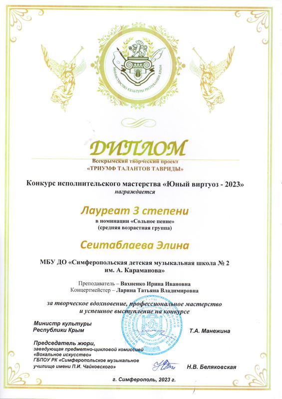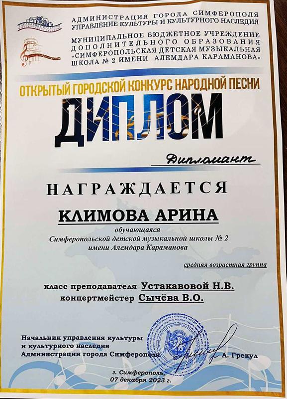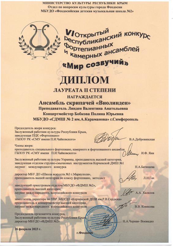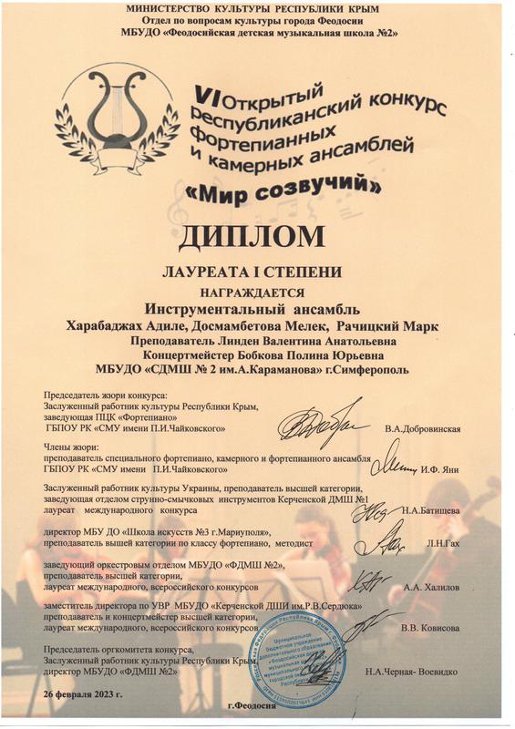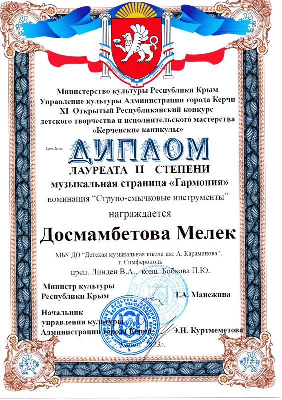 Муниципальное бюджетное учреждение дополнительного образования «Симферопольская детская музыкальная школа № 2 имени Алемдара Караманова» муниципального образования городской округ Симферополь